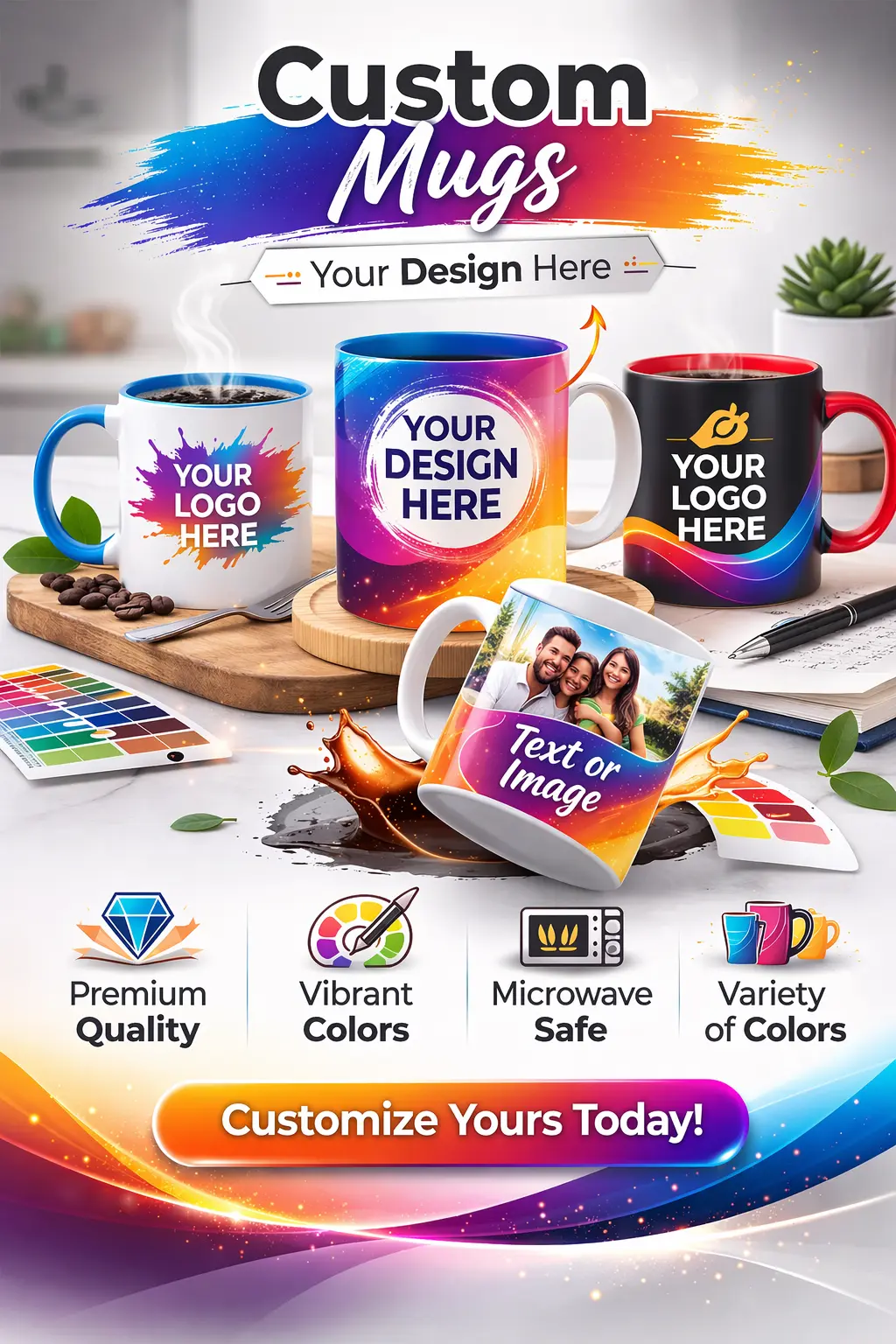 Elevate your corporate identity or create the perfect personalized gift with our high-quality custom mugs. Whether for office use, promotional events, or a thoughtful giveaway, our mugs are designed to combine durability with vibrant, long-lasting prints.