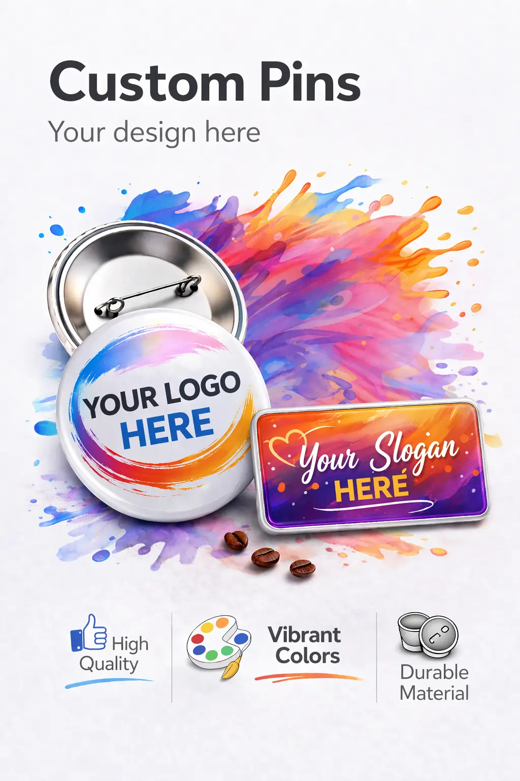 Our custom round pins are the perfect, cost-effective way to spread your message, promote your brand, or add a personal touch to any outfit or accessory. Lightweight yet durable, these pins are a fan-favorite for events, giveaways, and corporate identity.